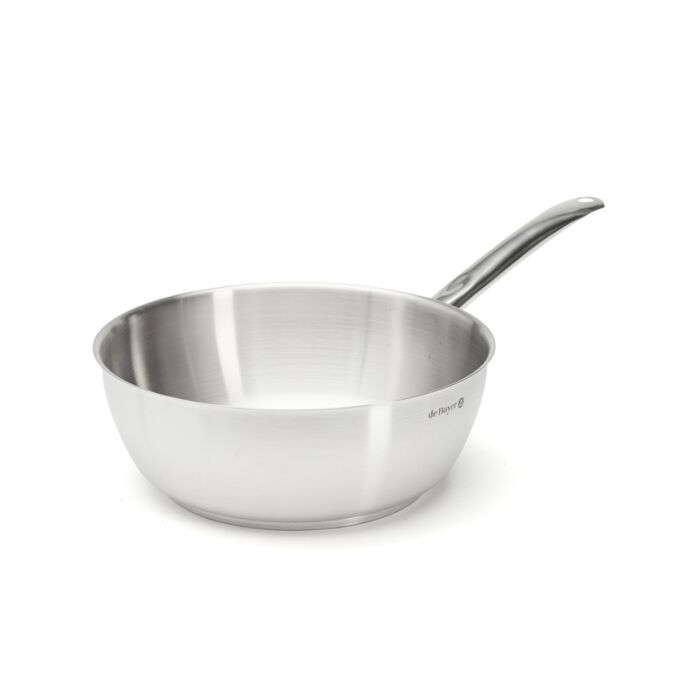 Gewölbte Sauteuse mit weitem Gießrand, ideal zum Reduzieren von Saucen. Form ermöglicht besseres Verdampfen.