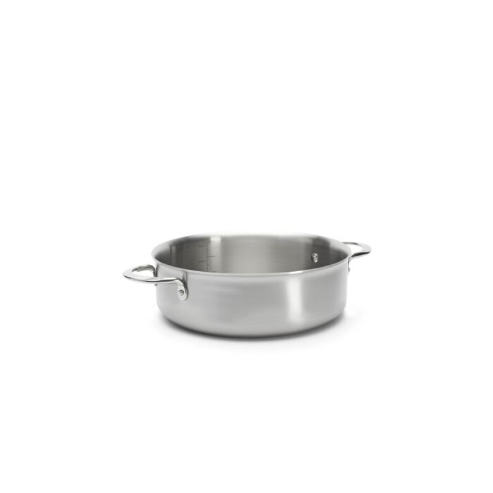 Niederer Bratentopf aus mehrlagigem Edelstahl, 3-lagig. Die Alchimy-Serie hat eine gebürstete Oberfläche, genietete Edelstahlgriffe und ist für alle Herdarten einschließlich Induktion und den Backofen geeignet. Die mehrschichtige Konstruktion führt zu besserer Wärmespeicherung, gleichmäßigerer Erwärmung und präziser Wärmekontrolle. Diese Serie besitzt keinen Sandwichboden, der die Leistung mindern würde. Sehr praktisch: können im Ofen verwendet werden und sind spülmaschinenfest. Die ergonomisch geformten Edelstahlgriffe bleiben auch während des Kochens kühl und sind fest vernietet. Produkteigenschaften der Alchimy-Serie: mehrlagiger Edelstahl (3 Lagen), gebürsteter Edelstahl, kühl bleibende Griffe, für alle Herdarten und den Backofen geeignet, made in France.