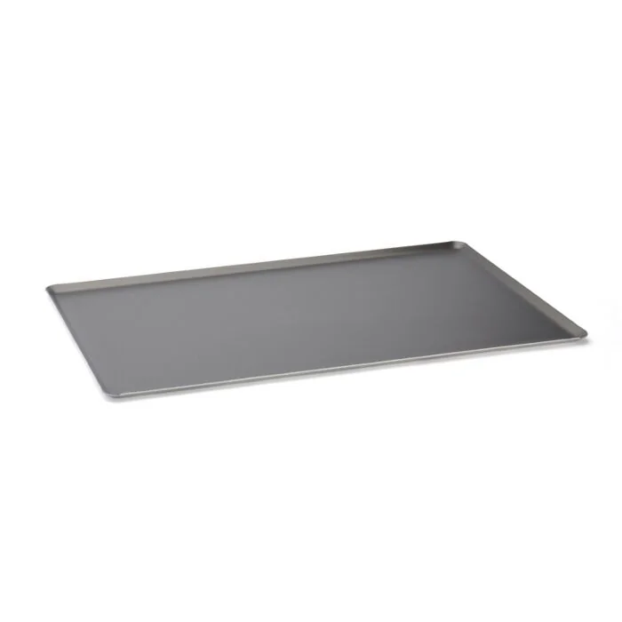 Rechteckiges Backblech mit schrägen Kanten aus dickem Aluminium, Antihaftbeschichtung Choc 5. Ideal für empfindliche Kochvorgänge. Geeignet zum Backen von Pasteten, Blätterteigkuchen, Viennoiseries, Tuile-Dachziegeln, Katzenzungen. Kalt und heiß einsetzbar, mit oder ohne Ringe und Rahmen. Ultrabeständige Beschichtung für die lange Lebensdauer des Produkts. Hervorragende Antihafteigenschaften, für das leichte Ablösen selbst der empfindlichsten Backwaren. Die Beschichtung macht den Einsatz von Backpapier überflüssig. Leichtes, widerstandsfähiges und formstabiles Backblech, leicht zu handhaben. Nicht im leeren Zustand erhitzen. Nicht überhitzen. Temperaturschocks vermeiden. Keine Metallgegenstände auf dem Backblech verwenden. Pflege: Reinigung mit der Hand, mit nicht schleifendem Schwamm. Nicht spülmaschinengeeignet.