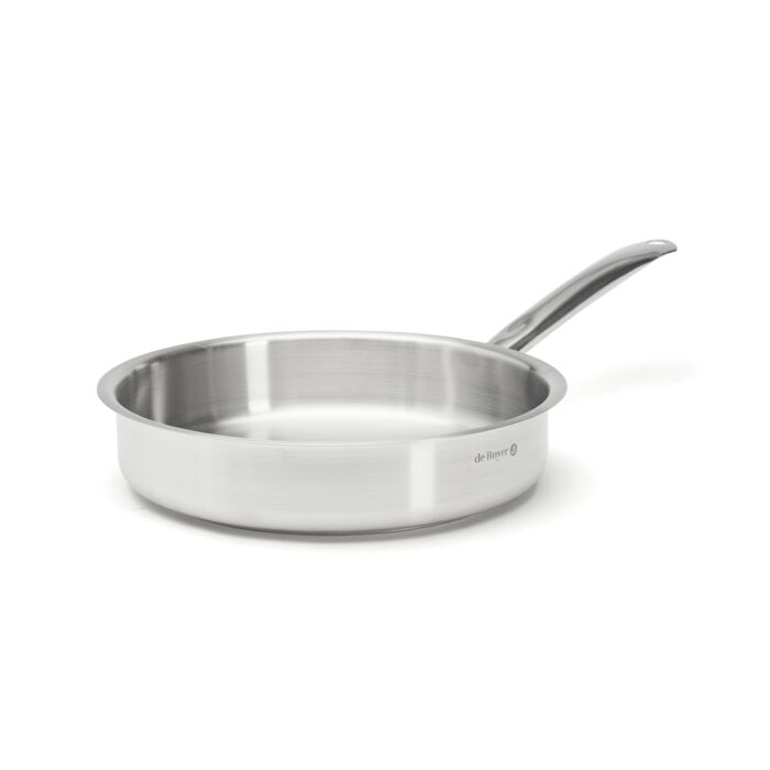 Sauteuse mit geraden Wänden, ganz aus Edelstahl, zum raschen Anbraten von Speisen, die in dem Kochgeschirr problemlos bewegt oder gewendet werden können. Der niedrige Rand ermöglicht das Verdampfen der Feuchtigkeit. Kochgeschirr PRIM'APPETY aus Edelstahl AISI 304 mit Gießrand. Dicker, für Induktion geeigneter Sandwichboden: homogene Verteilung der Hitze über den gesamten Boden des Kochgeschirrs. Robuste und langlebige Profiqualität. Rohrstiel aus an mehreren Punkten verschweißtem Edelstahl = einfaches und bequemes Festhalten. Innenflächen glatt. Seidenmatte, polierte und gebürstete Oberfläche. Spülmaschinenfest. Gelegentlich mit Spezial-Polierpaste für Edelstahl polieren, um den ursprünglichen Glanz zurückzugewinnen. Für alle Herdarten, auch Induktion.