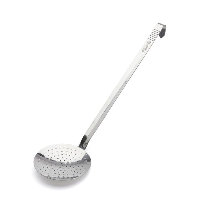 Zum Abschöpfen und Abtropfen lassen von Lebensmittel. Profigerät aus robustem Edelstahl. Breiter Griff, Dicke 2,5 mm, sehr steif. Ergonomisch geformter Griff. Ideale Neigung des Griffs. Für tiefe Behälter geeignet. Am Ende der Geräte befindet sich ein stabiler Haken. Geeignet für runde oder quadratische, dünne oder dicke Vorrichtungen. Auf dem Griff eingravierte Größe. Pflege: spülmaschinenfest.
