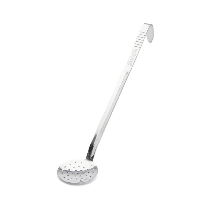 Zum Abschöpfen und Abtropfen lassen von Lebensmittel. Profigerät aus robustem Edelstahl. Breiter Griff, Dicke 2,5 mm, sehr steif. Ergonomisch geformter Griff. Ideale Neigung des Griffs. Für tiefe Behälter geeignet. Am Ende der Geräte befindet sich ein stabiler Haken. Geeignet für runde oder quadratische, dünne oder dicke Vorrichtungen. Auf dem Griff eingravierte Größe. Pflege: spülmaschinenfest.