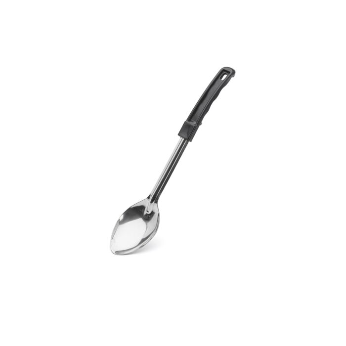 Servierlöffel aus Edelstahl mit schwarzem Kunststoffgriff. Ergonomischer Griff für eine bequeme Handhabung. Kühl bleibender Griff für sichere Verwendung. Optimierung der Eigenschaften, welche Nutzen und Qualität verbinden. Geschlossener Löffel: zum Servieren von Fleisch in Sauce und Obstsalaten. Spülmaschinenfest.