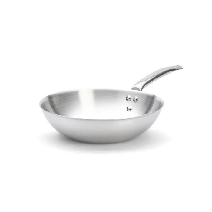 Wok aus mehrschichtigem Edelstahl, 3-lagig. Die Alchimy-Serie hat eine gebürstete Oberfläche, genietete Edelstahlgriffe und ist für alle Herdarten einschließlich Induktion und den Backofen geeignet. Die mehrschichtige Konstruktion führt zu besserer Wärmespeicherung, gleichmäßigerer Erwärmung und präziser Wärmekontrolle. Diese Serie besitzt keinen Sandwichboden, der die Leistung mindern würde. Sehr praktisch: können im Ofen verwendet werden und sind spülmaschinenfest. Die ergonomisch geformten Edelstahlgriffe bleiben auch während des Kochens kühl und sind fest vernietet. Produkteigenschaften der Alchimy-Serie: mehrlagiger Edelstahl (3 Schichten), gebürsteter Edelstahl, kühl bleibende Griffe, für alle Herdarten und den Backofen geeignet, made in France.