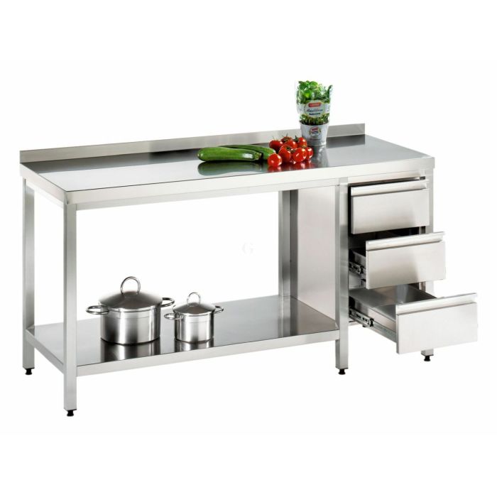 Gewerbe-Edelstahl-Arbeitstisch mit Schubladenblock und Bodenablage