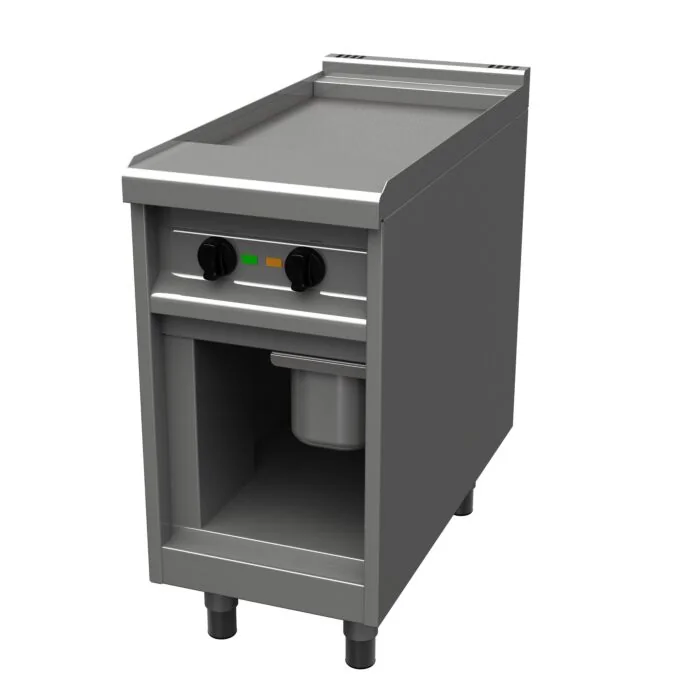 - Bratfläche mit minimaler Hitzeabstrahlung, ideal für den Frontcooking-Bereich