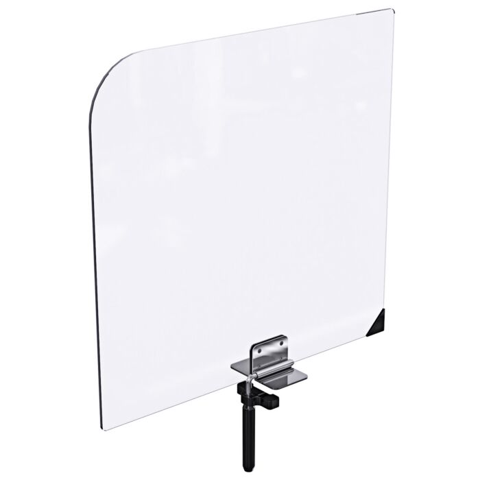 - Hygieneschutz aus kratzfestem Acrylglas zur Montage auf Tischplatten mit einer Stärke von 23 bis 146 mm