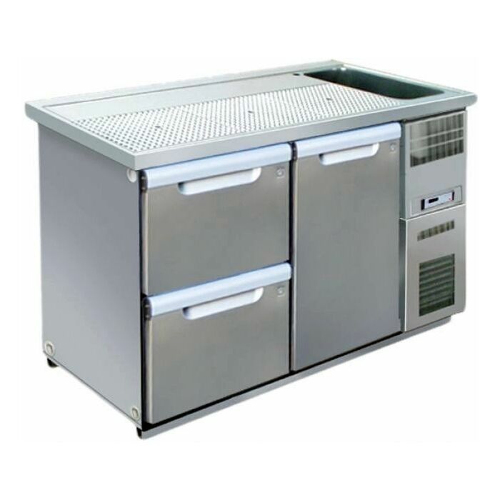 - 1 Tür wahlweise mit höhenverstellbaren Rosten oder Faßschienen und 2 Schubladen