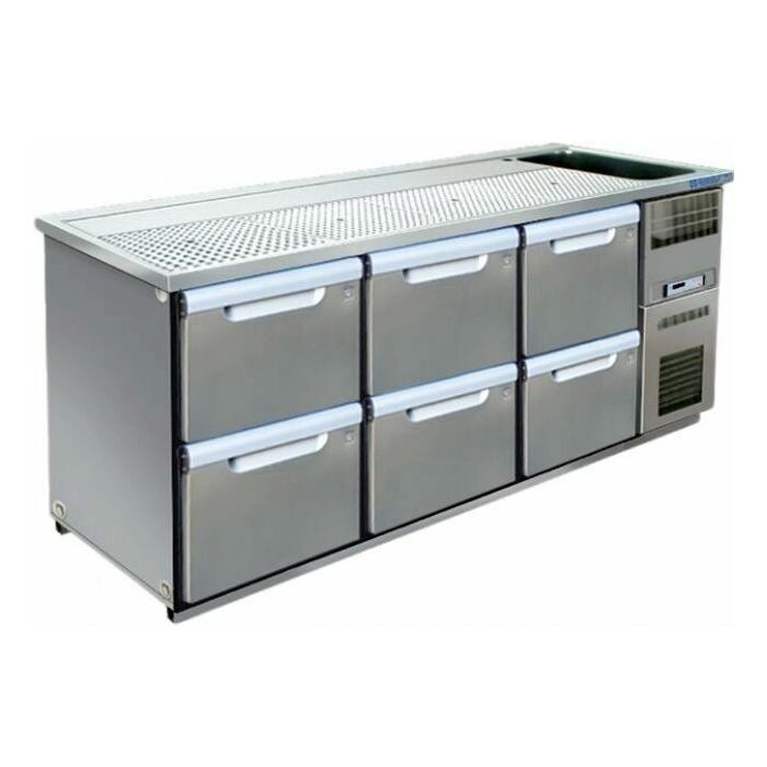 - Kühlkorpus bestehend aus drei Abteilen 550 mm, mit zwei Mittelstegen 110 mm und 6 Schubladen