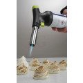 Von Robert Bronwasser für Köche entworfen, Dank des stilvoll mattschwarzen Designs mit grünen Akzenten und dem ergonomischen Griff ist es ein Genuss diesen Crème-Brûlée-Brenner im Arbeitsalltag zu verwenden, Der Brenner ist einfach und sicher an der Gaskartusche befestigt und bedeckt die gesamte Oberseite der Kartusche, Die Piezo-Zündung macht das Zünden einfach, das große Gasdrehrad ermöglicht eine einfache Einstellung der Flammengröße und -intensität, Dieser Brenner kann in jedem Winkel betrieben werden, auch über Kopf, da das verbesserte Design des Brenners ein Flackern der Flamme verhindert,