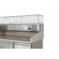 Hendi Pizzatisch, dreitürig mit Aufsatzkühlvitrine 380 + 40 L, 254 L, -2 / 8 ˚C, 230 V / 0,4 kW, R600a, 1365 x 700 x (H) 1012 mm