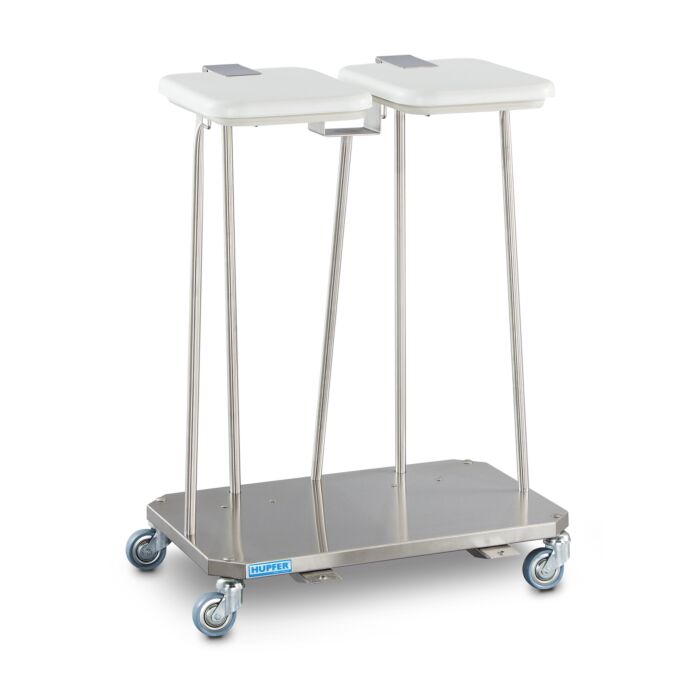 Der Hupfer Abfallsammler SWAF-2 bietet Nutzungsmöglichkeiten als fahrbarer Sammler für Abfälle oder Schmutzwäsche mit hygienisch einwandfrei per Fußpedal zu öffnenden Deckeln.