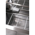- Serienzubehör: 5 Zwischenstege, 1 Rost rilsaniert weiß und 2 Paar kippsichere Auflageschienen pro Tür und Schneidbrett aus Polyethylen