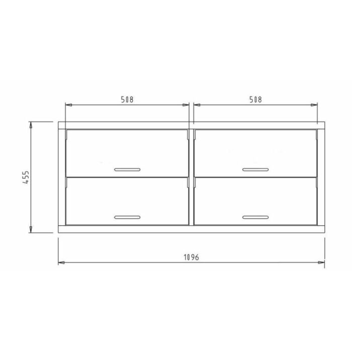 - Abmessungen außen (Breite x Tiefe x Höhe): 1096 x 20 x 455 mm
