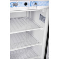 Gewerbetiefkühllagerschrank mit zwangsbelüftetem Kondensator im Maschinenraum. Der fugenlose Kunststoff-Innenbehälter ist leicht zu reinigen. Der Tiefkühlschrank verfügt über 7 feststehenden Verdampferroste. Der tiefgezogenen Boden mit gerundeten Ecken ist mittig mit einem Reinigungsablauf versehen. Die Tür mit durchgehender Griffleiste ist abschließbar und mit einer Magnetsteckdichtung versehen, somit servicefreundlich ohne Werkzeug wechselbar. Das manuelle Thermostat und die digitale Temperaturanzeige sind in der Frontblende integriert. Vorn 2 höhenverstellbare Füße, hinten 2 Rollen.