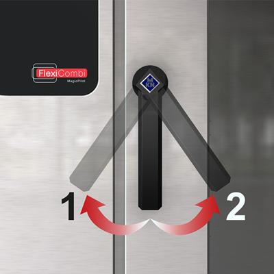 Der FlexiCombi Team bietet die Möglichkeit in einem Gerät mit 2 Gararten zu arbeiten. Das MagicPilot Touch & Slide Bedienkonzept ist auf Augenhöhe bedienbar und trägt zusammen mit dem um 180° gedrehten unteren Türgriff zum ergonomischen Arbeiten bei. Die FlexiCombi Team Variante ist nur in der MagicPilot Version erhältlich. Das Gerät wird komplett montiert auf einem robusten Untergestell mit 230 mm hohen Flanschfüßen geliefert.