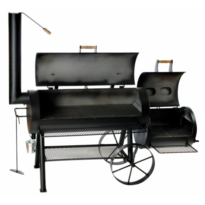 - durch den an die Feuerbox angereihten Aufbau und die Regulierung des Luftzugs (und der Temperatur) für verschiedene Garmethoden geeignet