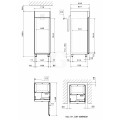 - Abmessungen innen (Breite x Tiefe x Höhe): 560 x 707 x 1544 mm, Tiefe bei geöffneter Tür: 1480 mm