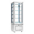 - steckerfertige Panorama-Kühlvitrine mit Umluftkühlung und 4-seitigem Glaseinblick