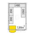 - je Regalelement mit 4 gelochten, höhenverstellbaren Regalböden (+/- 150 mm) aus Polyethylen