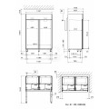 - Abmessungen (Breite x Tiefe x Höhe): 1441 x 835 x 2050 mm (Tiefe bei geöffneter Tür: 1480 mm)