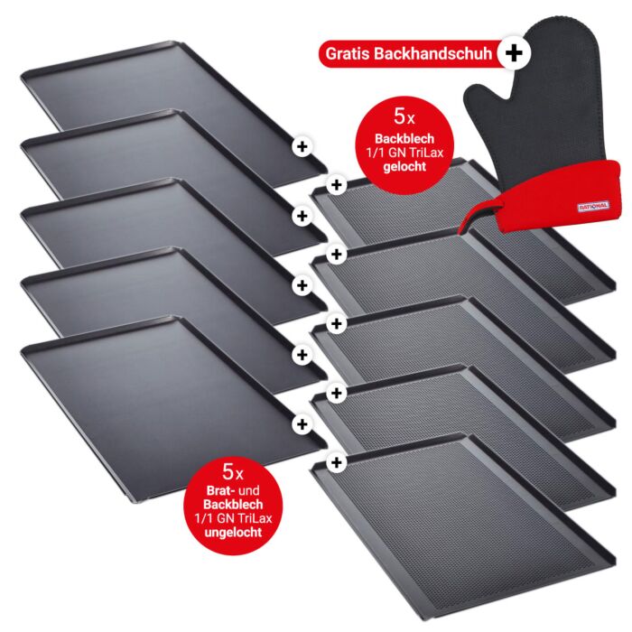 - 5 x Brat- und Backblech 1/1 GN TriLax ungelocht
