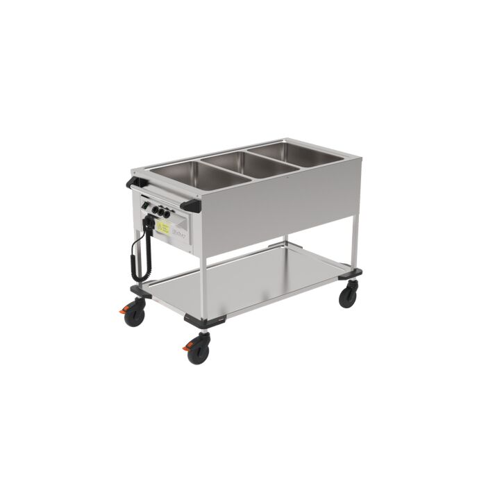 Für den Transport von Speisen und die Verteilung in Ihrem Hause ist der Speisentransportwagen unabkömmlich. Mit dem speziellen Zubehör, wie dem Aufsatzbord mit Licht und einem abklappbaren Bord an Stirn- und Längsseite erhält man eine kleine Ausgabestation. Der Zubringerwagen ZUB 3 ist nass und trocken beheizbar. Der Vorteil von trockener Beheizung ist ein deutliches Energiesparnis.