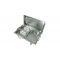 - Material: (Gehäuse, Deckel und Deckelhalterung) Edelstahl, hochglanzpoliert, (Wasserbehälter) Edelstahl