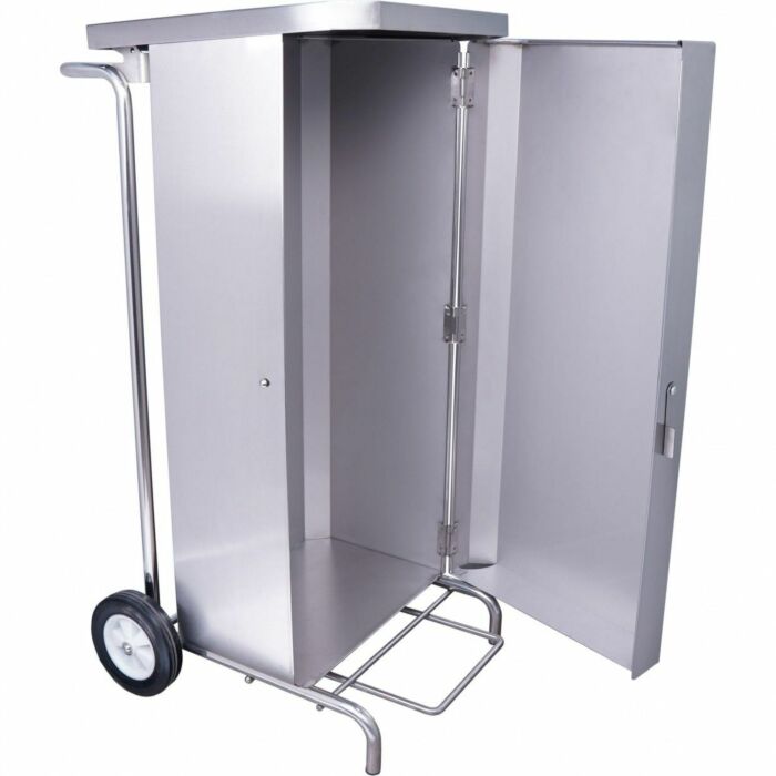 - Vierseitige Edelstahlverkleidung mit pedalbetätigtem Edelstahldeckel