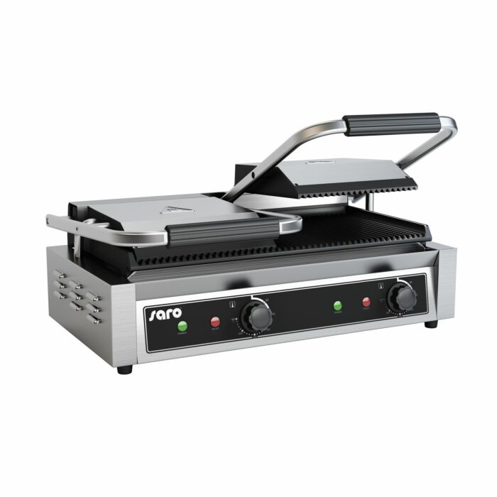 - Maße: B 580, Grillplatte oben: 2x 215, Grillplatte unten: 440 x L 410, Grillplatte oben: 215, Grillplatte unten: 230 x H 190