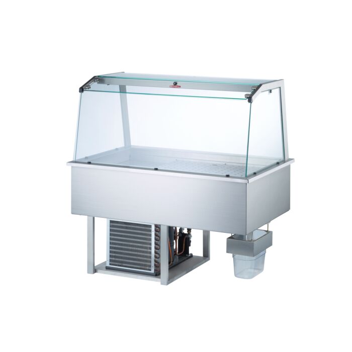 Die Kaltausgabe aus der Serie Profit Line ist für den Einbau vorgesehen. Die Kühlausgabe eignet sich hervorgend für die Speisenausgabe an Schulen und in Kantinen. Salate bleiben länger frisch und Süßspeisen/Desserts behalten Ihr Optik und frischen Geschmack. Die Kaltausgabe ist mit einer Kühlwanne und für GN-Einsätze mit einer Tiefe von 150 mm ausgestattet. Die Seiten, die Abdeckung und der Hustenschutz sind aus Sicherheitsglas gefertigt. Die Kaltausgabe ist mit zuschaltbaren Licht ausgestattet.