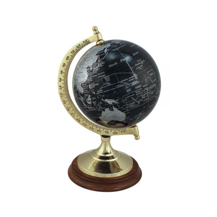 SeaClub Globus schwarz Messingfuß auf Holzsockel 22,5 cm