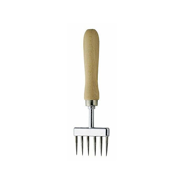 Der Eiszerkleinerer Modell 6 besteht aus 6 gehärteten Stahlnadeln und ist mit einem Holzgriff ausgestattet.