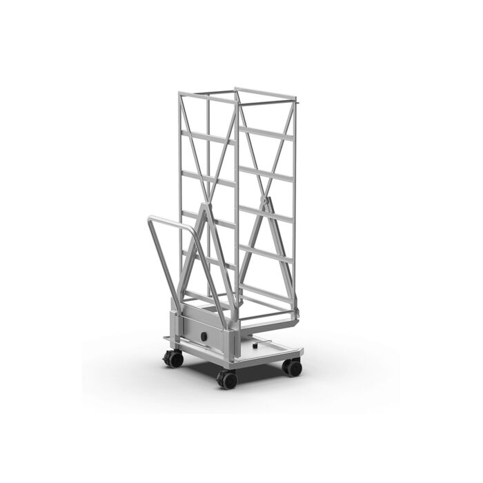 Trolley zum Garen und Kühlen von Hefeteigwaren mit dem Blech-Flipping-System. Struktur aus AISI 316L Stahl.