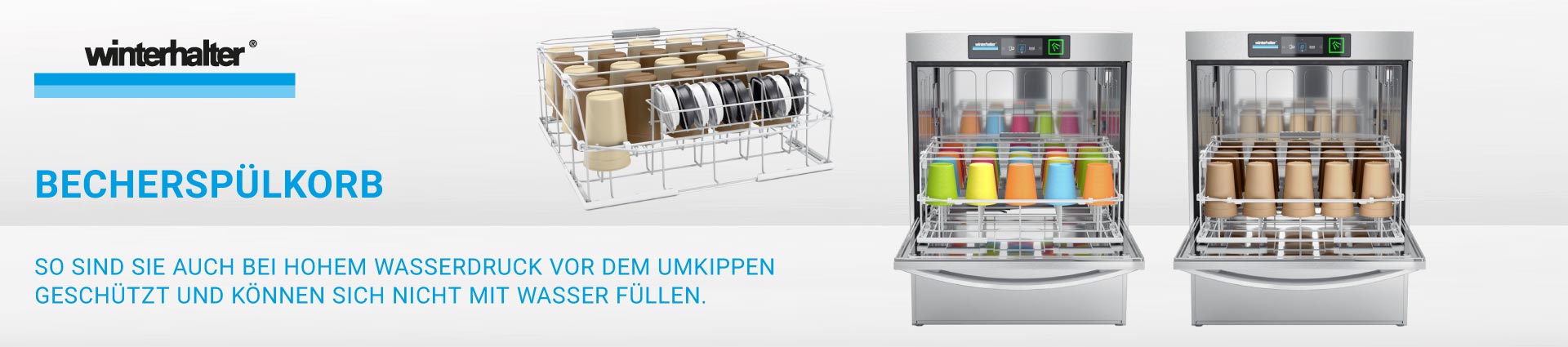 Sauber gespülte Mehrwegbecher. In unter zwei Minuten. So trocken, dass sie platzsparend ineinander gestapelt werden können. Auch beim Becherspülen setzt Winterhalter auf eine ganzheitliche Systemlösung: Maschineneinstellungen, Korb und Spülchemie sind exakt abgestimmt auf das Spülen und die Trocknung von Kunststoff. Denn nur im Zusammenspiel können die Probleme beim Becherspülen professionell gelöst werden.